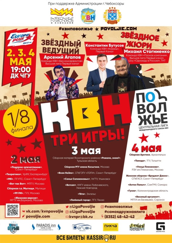 Билеты можно забронировать в офисе Квн Чувашии по тел. 48-42-42 и на сайте KASSIR.RU и на KKONCERT.ru