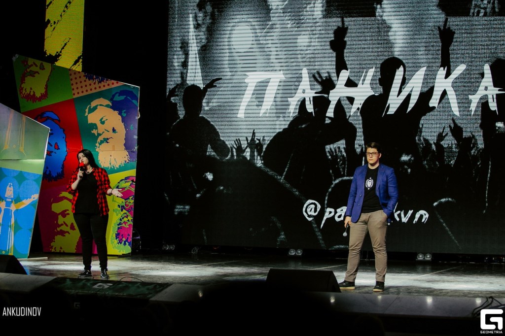 "Паника", ЧПК им.Никольского. Самая, наверное, тёмная из всех возможных цветов лошадей этого сезона. В первой игре это "три кита, на которых держится КВН Чувашии...", в этот раз их двое и теперь они просто "стоят так, потому что держат равновесие в ДК"... И если начинали сезон с того что выводили местных КВНщиков из "Столицы", то на этой игре "выводили" на видео на экране: Ваню из "Так-то" и Валдеса из "Нате", проходящих кастинг в "Панику"... И, кстати, почему "Паника"?)) Непонятно откуда и почему..., но смешно! Что дальше? В полуфинале одна Катя?)) А если финал, то ...?)) Осталось только научиться играть в Разминку, попридумывать новые ходы и всё получится!