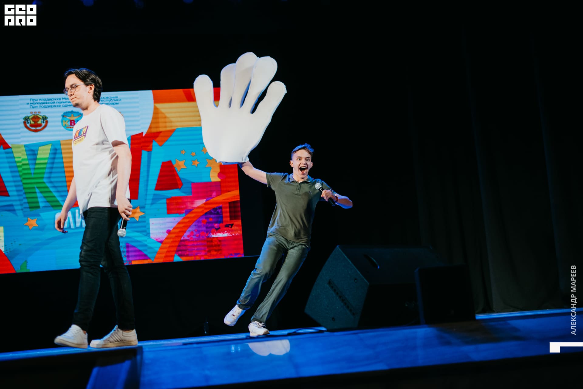 Сборная SMM-специалистов на сцене! Если говорить об этом сезоне лиги "Столица", то больше знакомы нам как команда КВН "Максим Александрович", уже полуфиналисты сезона. Сегодня же - шутят про себя, свои интернет-будни, показывают ролики и не только. Один из Максимов чуть забывает слова, но от этого - ещё смешнее!)) Заканчивают мыслью о желании принять участие и в следующем Кубке с надеждой всё так же остаться "работающей" молодёжью)). Спасибо, будем очень ждать!