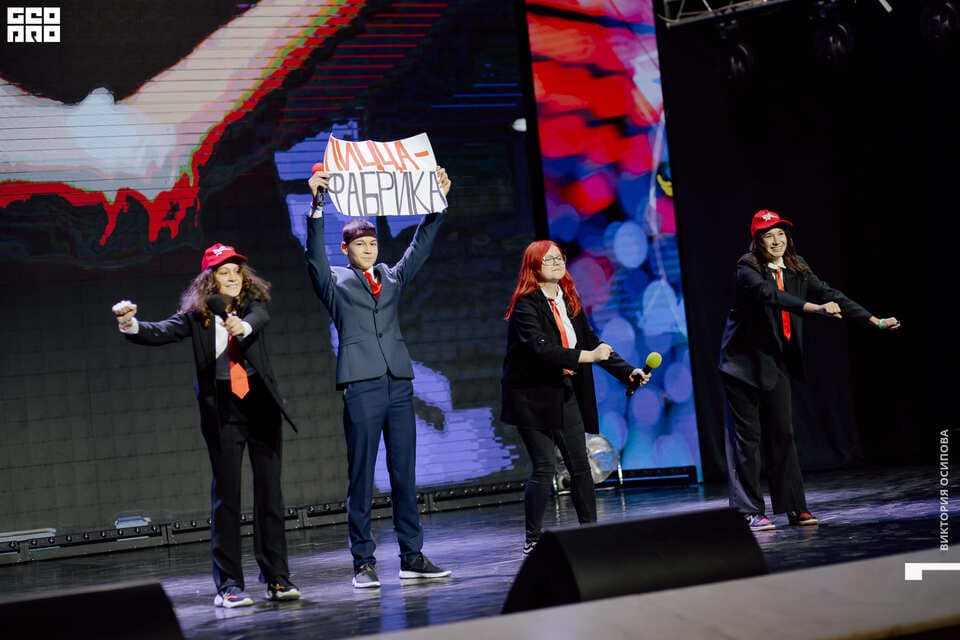 Прошлогодние финалисты. Но, помнится нам, самой яркой игрой у ребят получился тогда всё-таки полуфинал. А вот в этот раз на фестивале - прям очень хорошо! И снова - всего один сезон за плечами, а уже хорошая такая сценическая уверенность, яркие сформированные образы, и всё работает, а главное - веселит! Так что пусть хорошие выступления у вас получаются не "через одно", а постоянно. Заслуженно - "победитель" фестиваля, если бы была такая номинация. В подарок ребятам достался дополнительный новый мерч в виде новых классных толстовок с брендовкой детского КВН! Поздравляем!