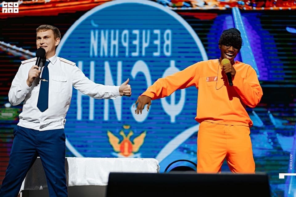 Третий сезон и третий финал у работников службы исполнения наказаний! Начинают с песни про УФСИН-МЭНА под "Чёрный плащ - укради и он появится....))". И вот он сам - в плаще, маске, всё как полагается. Всё останавливает капитан (и команды, и по званию) Дима. Приводит в чувство Андрея, обозначает планы на финал. А они, понятно, только на победу. Смешная линейка и к миниатюрам. Заходит почти всё, особенно финальный номер про то как директор детского пионерского лагеря стал начальником тюрьмы - смешные речёвки, девизы, строевые песенки. Разминка тоже удаётся - несколько прям точных ответов в разрыв. В КОНе команда представила своё вечернее шоу - "Вечерний ФСИН". Тут тоже сработало практически всё - песни от ВИА, новости от ведущего, смешные гости в студии. Особенно разрывал зал вышедший в оранжевой робе чернокожий "наш подопечный по обмену", оказавшийся ещё и почти чистокровным чувашем! В доказательство - "Ташла эс чу! Ташла эс ча!" от гостя))) Буквально чуть-чуть не хватило УФСИНовцам десятых до чемпионства - и вот уже третье подряд звание Вице-Чемпиона!) Поздравляем с завидным постоянством! Такое, наверное, ещё сложнее, чем один раз выиграть!)