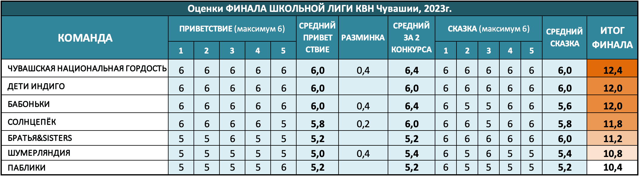 Любителям циферок - оценки финала: