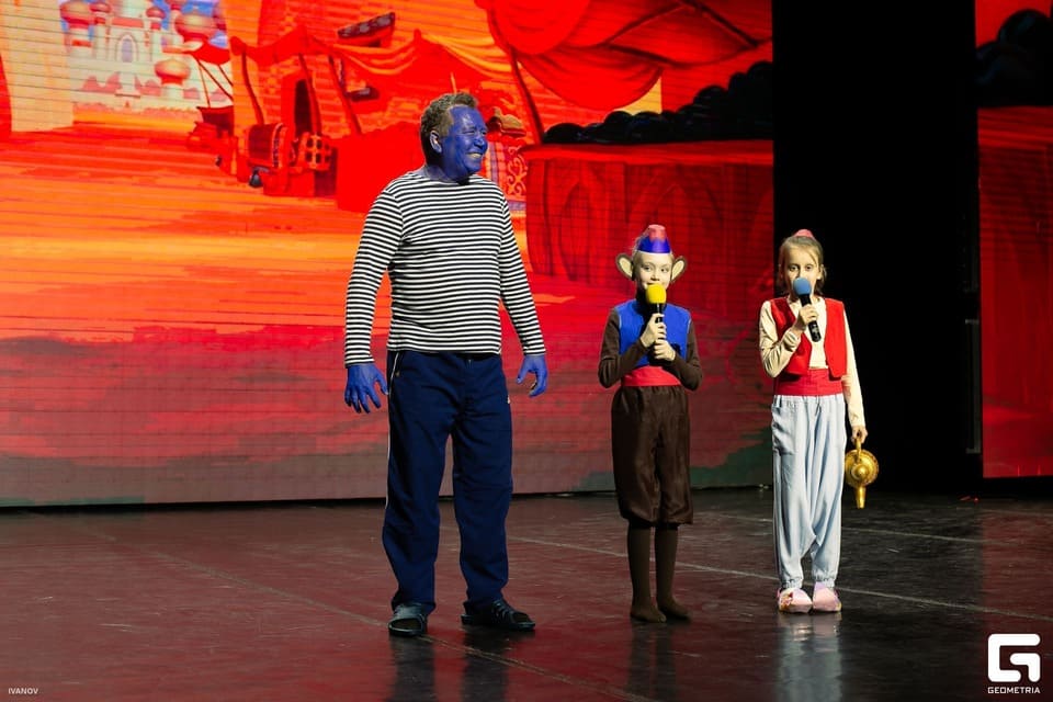 В сказке с удовольствием наблюдаем за Алладином и обезьянкой Абу, пришедшими к Джину-консультанту чинить поломанную лампу. Тут целый ассортимент смешных ламп, а заодно и синих людей. Причём реально синих: дочка, мама, дед, бабушка!!!)) Наконец, выбрали себе нового джина-бабушку, которая побеждает коварного Джафара тем, что «А я тебя спать уложу!» Интересная и насыщенная сказка! Жаль, чуть-чуть не хватило, хотя вполне претендовали на главный приз. Поздравляем с Вице-Чемпионством!!!