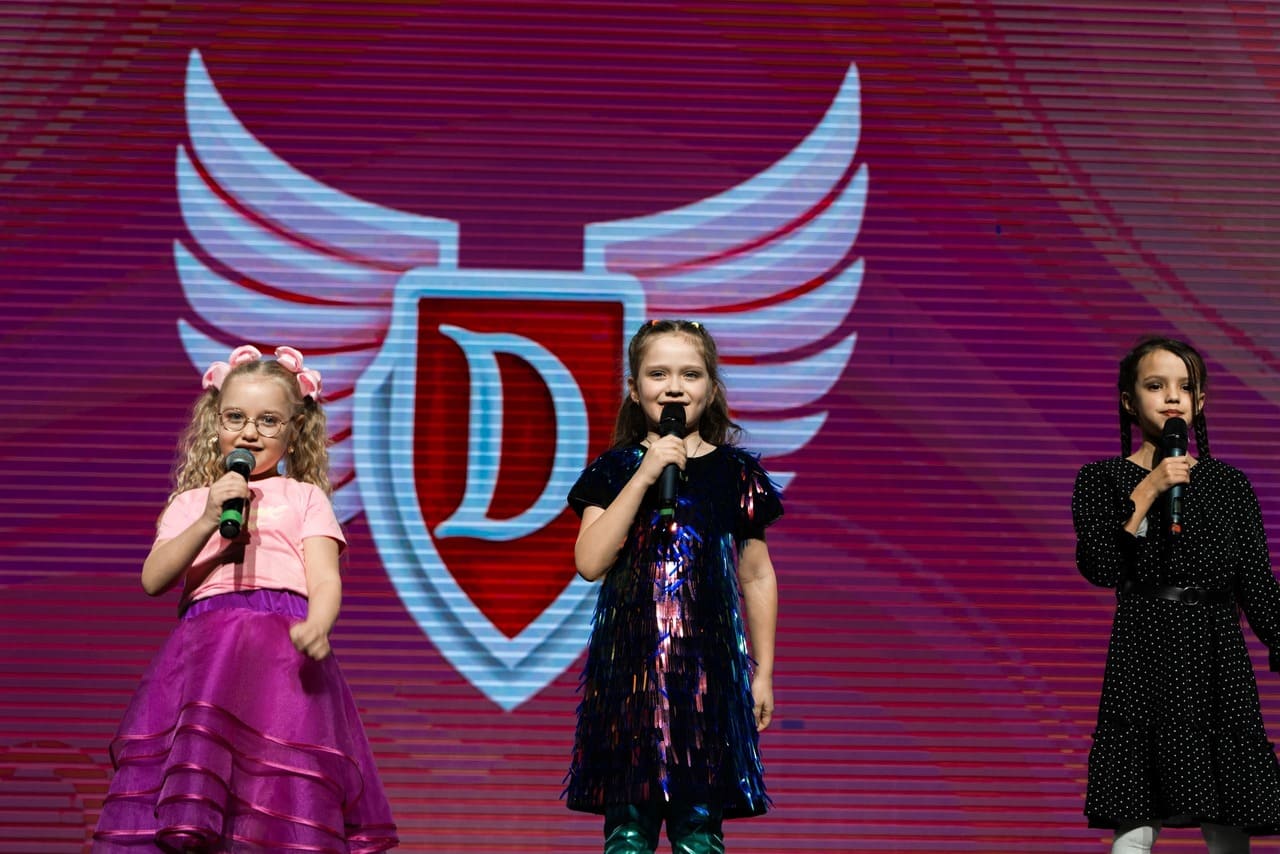 Яркие, в розовом, разновозрастная команда, но фронтменша - очень уверенная и бойкая девчонка, наоборот - выходит в чёрном - в образе "агента". Но как выясняется не "007", а "агента недвижимости" - "двигает" всю команду. Много разного весёлого происходит в линейке, в том числе и песенки. А в конце она же выходит, но уже в Снегурочке и даже загадывает себе мальчика на тачке, который реально выезжает на сцену. "А что, мне уже 7! Пора думать о будущем!". Хорошее выступление!