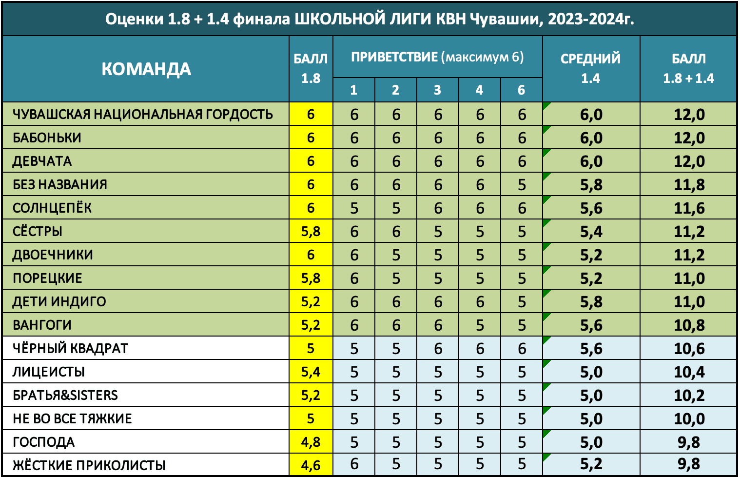 Турнирная таблица с суммой баллов за две игры выглядит так: