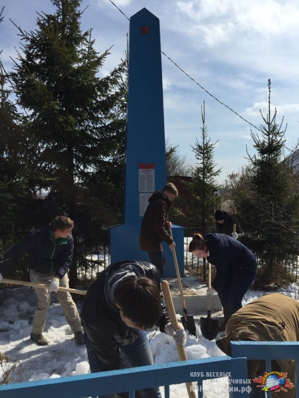 КВНщики приняли участие в Акции к 70-летию Великой Победы! Сегодня наши КВНщики приняли участие в акции, посвящённой 70-летию Победы в Великой Отечественной Войне, проводимой при поддержке Администрации г. Чебоксары, и внесли свой вклад в благоустройство памятников нашего города, а именно - Памятника, посвященного жителям, в те годы ещё деревни (сегодя - улица Плеханова нашего города), которые пали в боях за Родину! Спасибо откликнувшимся КВНщикам из команд "В малине" и "Идеальная сборная"! Всех с наступающим Днём Победы, которой в этом году 70 лет! Всем мира и добра! Вечная слава героям!